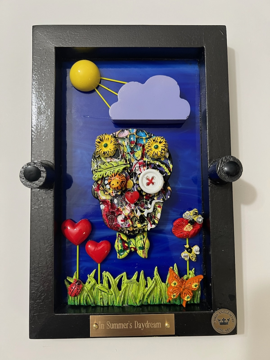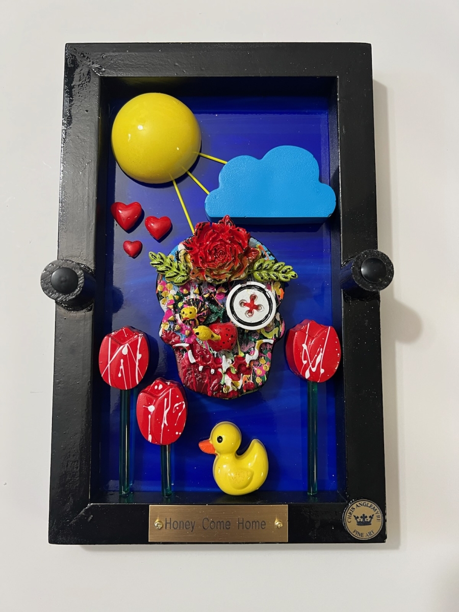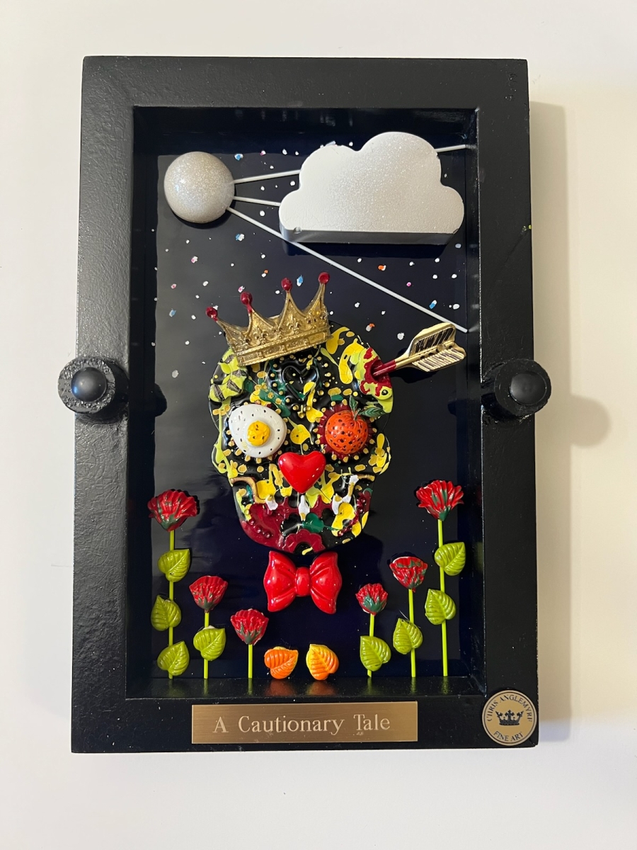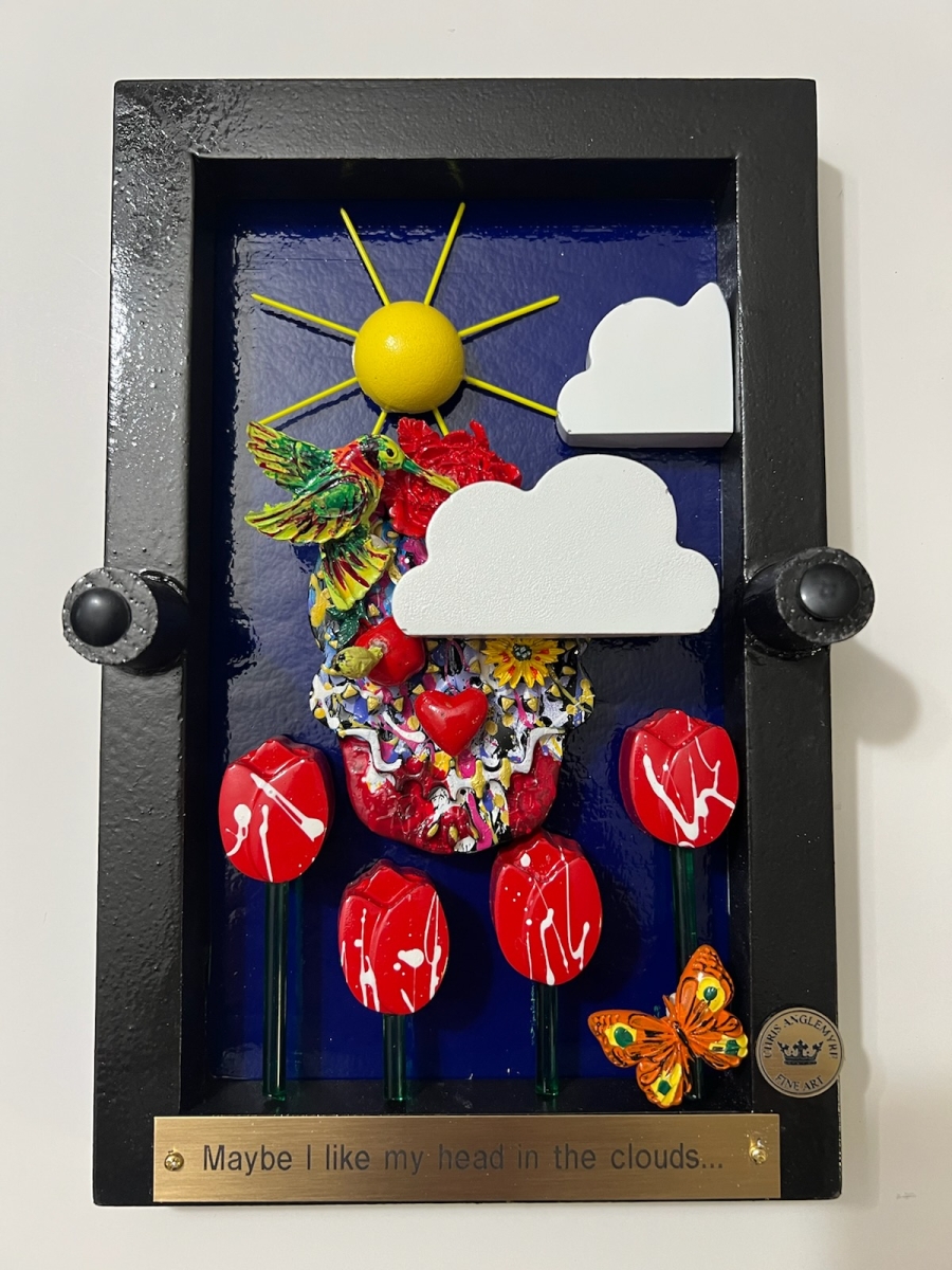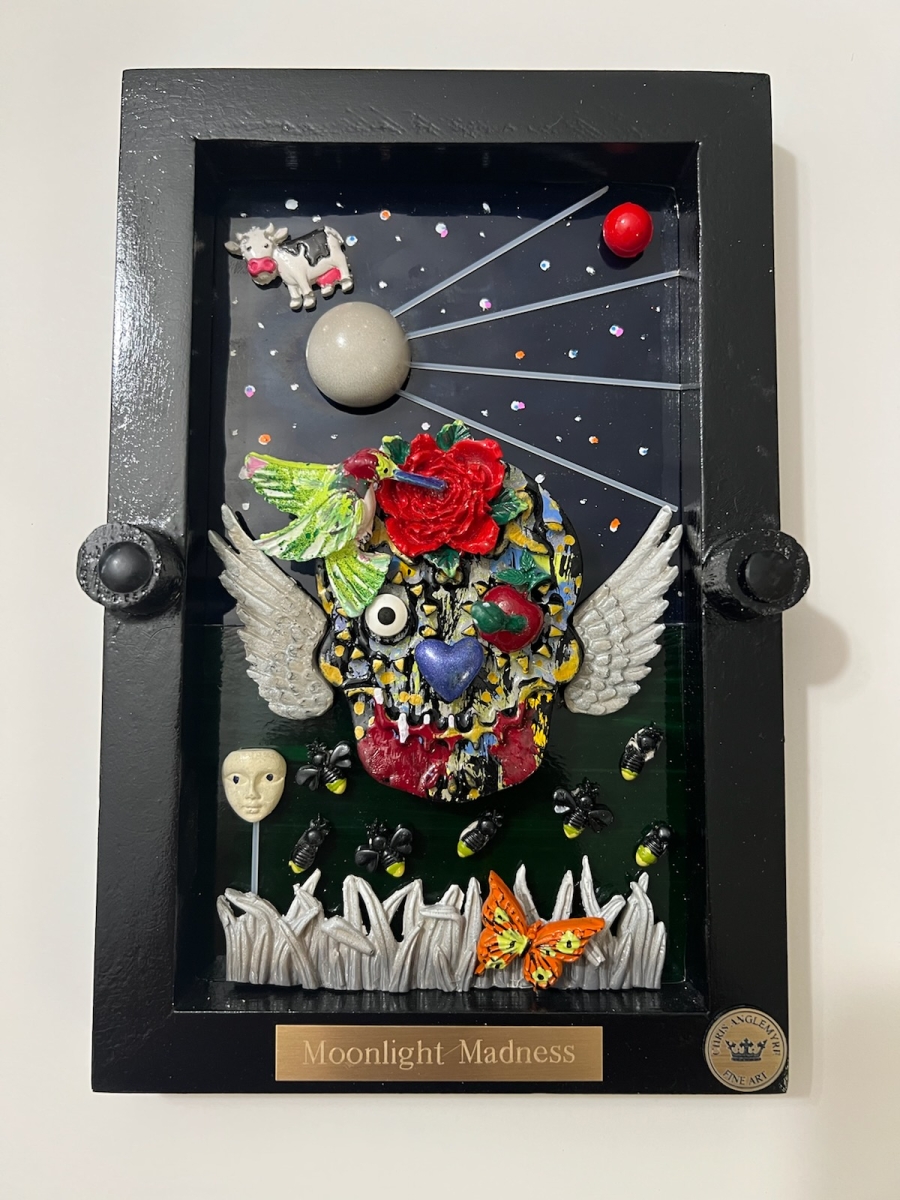 Hi, I’m Chris Anglemyre, Welcome to my page. I’ve been an artist Forever and I’ve worked in Every medium, From pencil, chalk, watercolors, acrylic, to oils, and airbrush. When I was very young, I hand-painted all of the lettering on Racing Stock-Cars. Throughout my college years, I painted murals on dormitory walls, caricatures, and so on. I have many hobbies, I sail, I’m a private pilot, snow and water-ski, Scuba, I’m not an actor- but I was cast on a national TV docu-drama (that was a blast!) and I love to travel, Paris is a favorite destination. I have 5 grown daughters, 10 grandchildren, and a dog named Zoe. This is my most recent art named “The Fragile Series” I’ve researched and secured resin molds from around the world. Each mold and piece is airbrushed and hand-painted with great detail. The background is stained glass, under polished plexiglass. If you are seeking “Unique Art” that will not be found elsewhere-look no further.