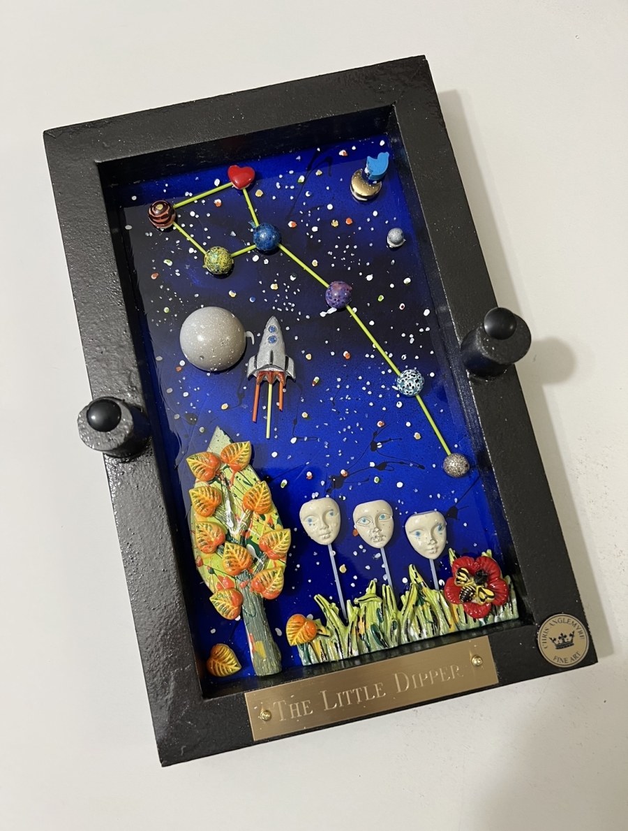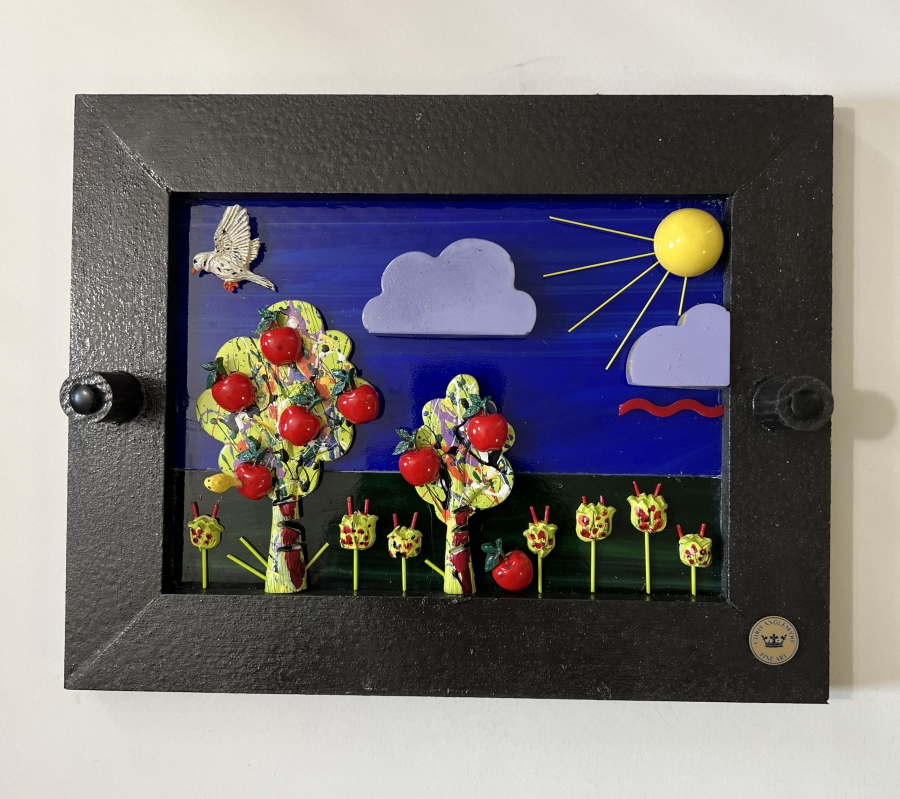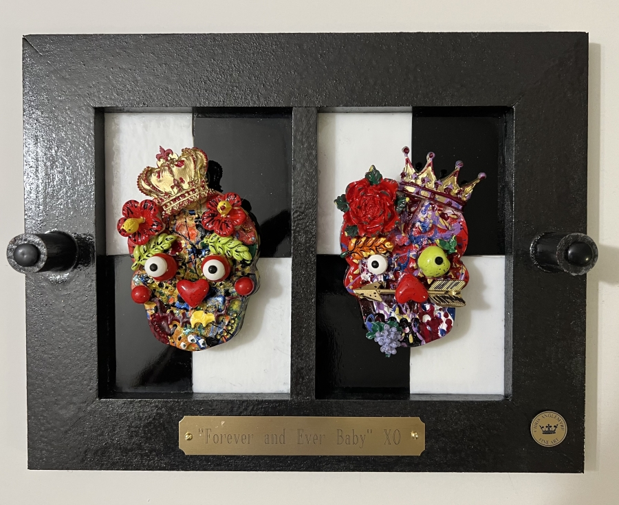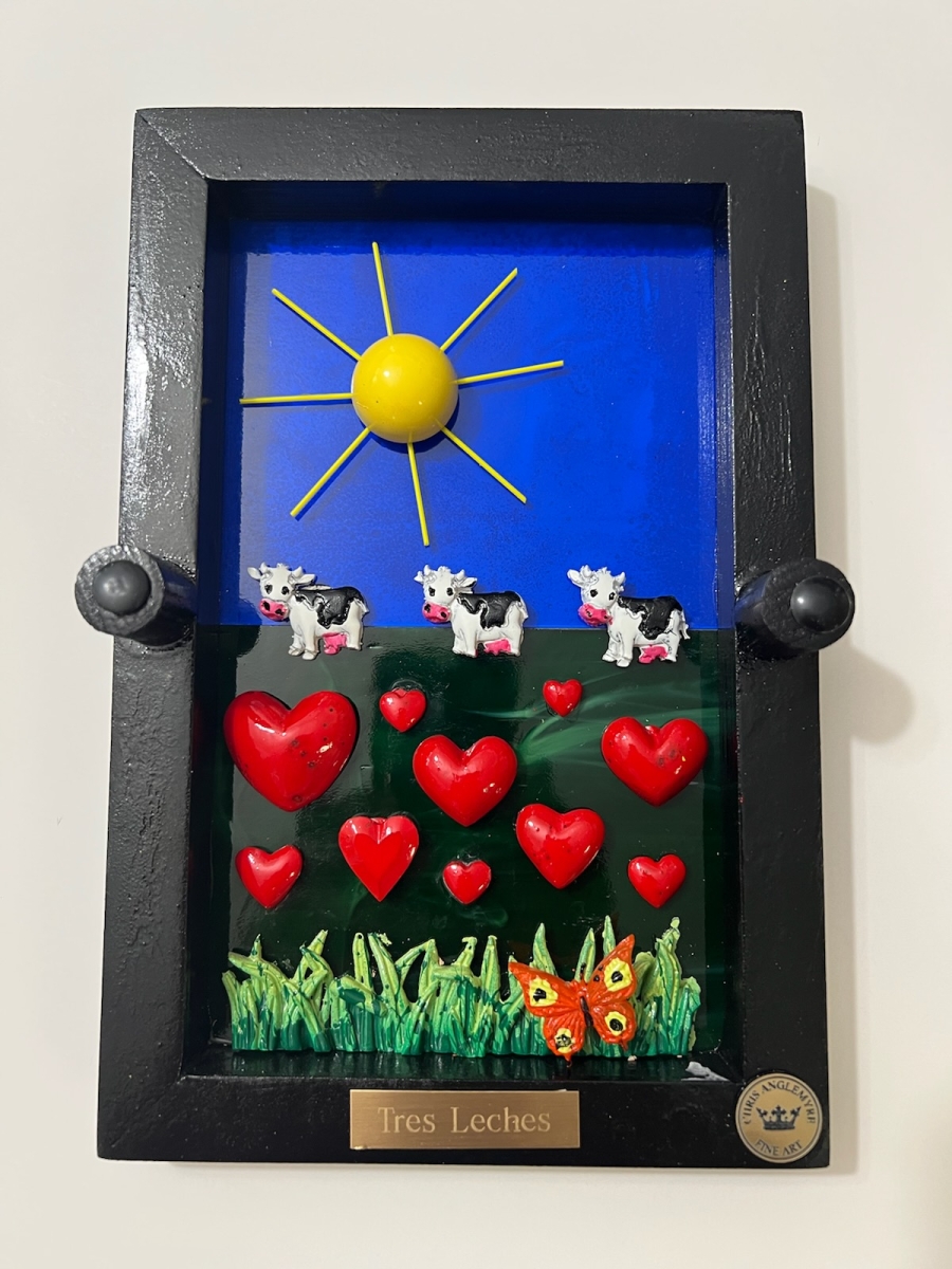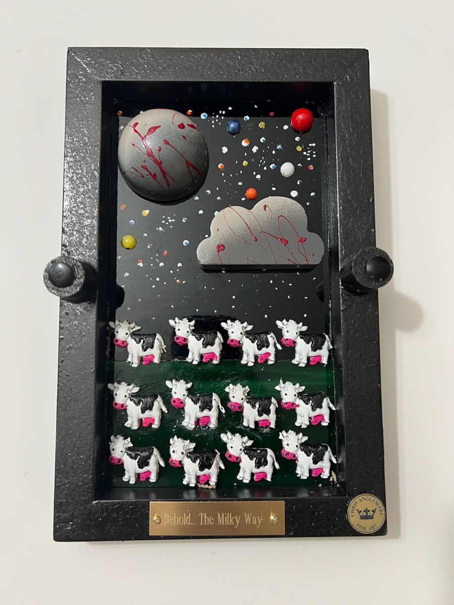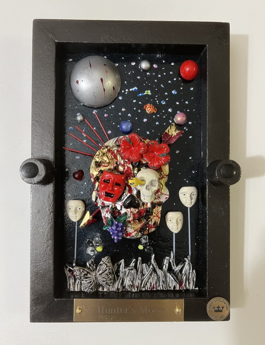 Hi, I’m Chris Anglemyre, Welcome to my page. I’ve been an artist Forever and I’ve worked in Every medium, From pencil, chalk, watercolors, acrylic, to oils, and airbrush. When I was very young, I hand-painted all of the lettering on Racing Stock-Cars. Throughout my college years, I painted murals on dormitory walls, caricatures, and so on. I have many hobbies, I sail, I’m a private pilot, snow and water-ski, Scuba, I’m not an actor- but I was cast on a national TV docu-drama (that was a blast!) and I love to travel, Paris is a favorite destination. I have 5 grown daughters, 10 grandchildren, and a dog named Zoe. This is my most recent art named “The Fragile Series” I’ve researched and secured resin molds from around the world. Each mold and piece is airbrushed and hand-painted with great detail. The background is stained glass, under polished plexiglass. If you are seeking “Unique Art” that will not be found elsewhere-look no further.